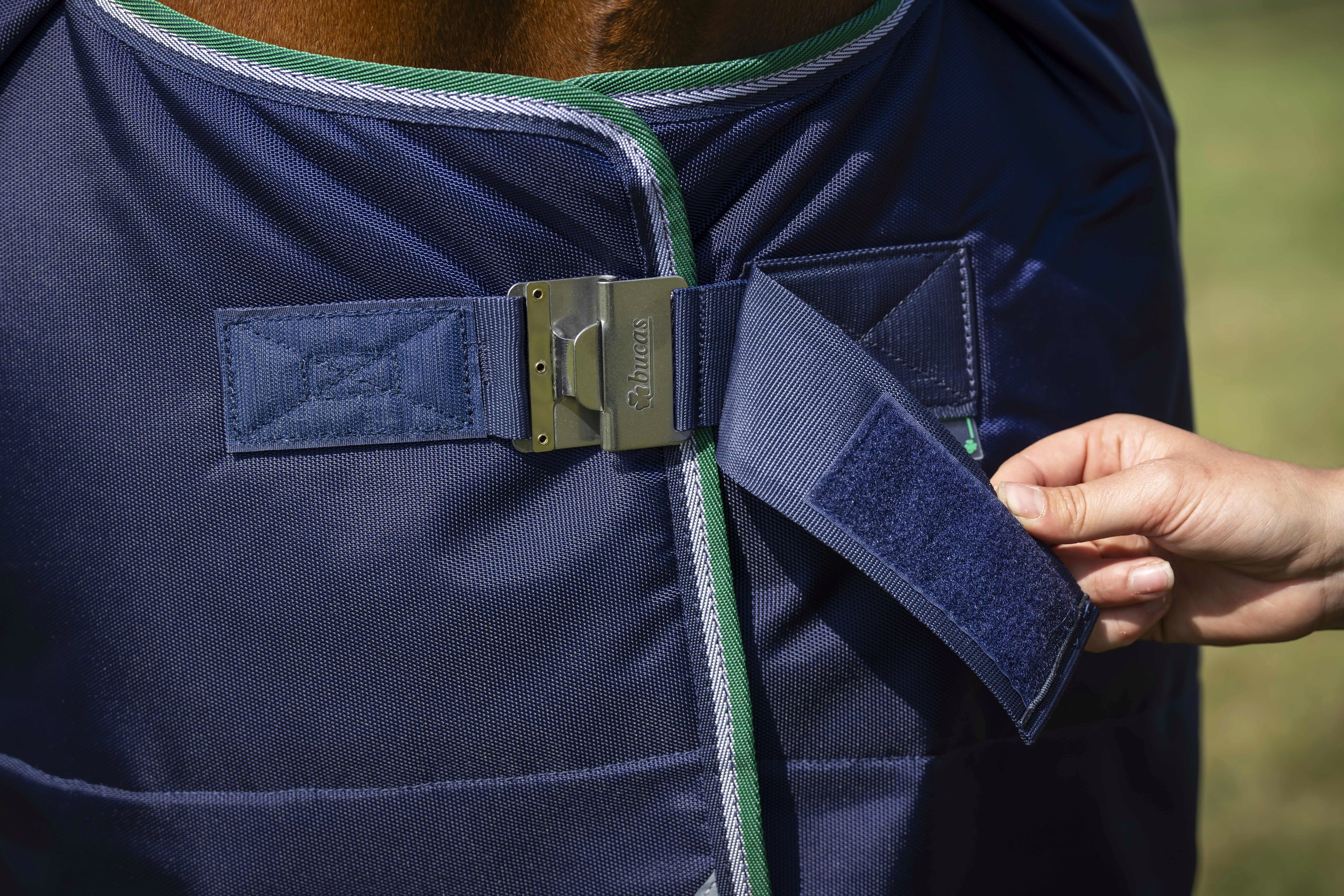 Pregrinjalo Bucas Smartex Turnout Medium s 150 g polnila je idealna za hladnejše in spremenljivo vreme. Združuje trpežne materiale z dobro premišljenimi lastnostmi in vašemu konju nudi zanesljivo zaščito pred dežjem, vetrom in nižjimi temperaturami.