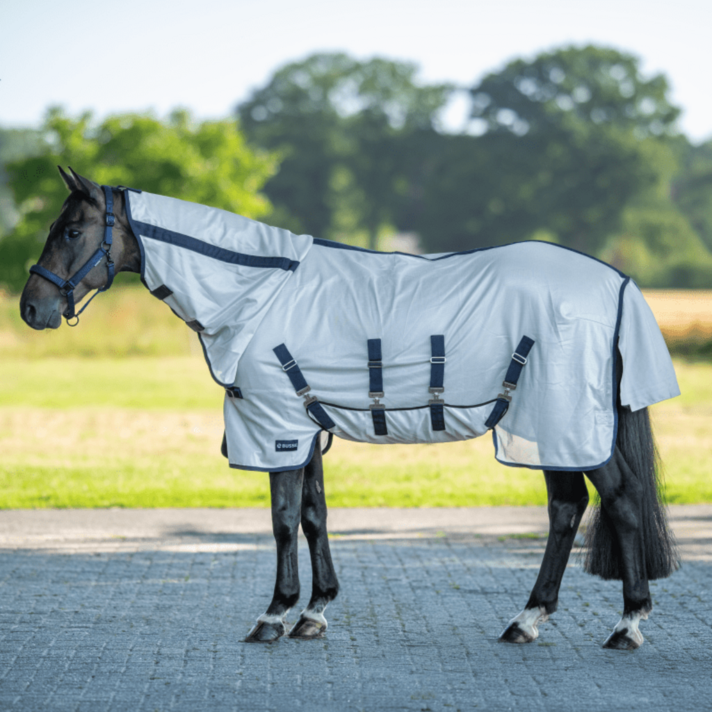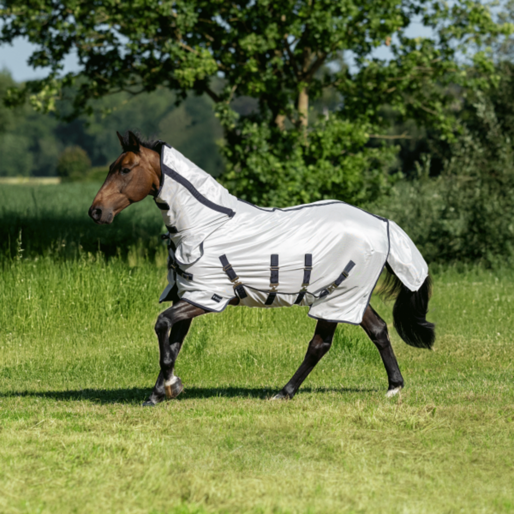 Iščete vrhunsko celovito zaščito, da bo vaš konj končno lahko spet v polni meri užival na paši? Pregrinjalo proti mrčesu Superb AB združuje izjemno fino specialno mrežico z inteligentnim krojem, razvitim posebej za gibanje na prostem. Posebnost tega modela je trpežen poliestrski material v zgornjem delu, ki ne le odganja nadležne insekte, temveč s svojimi odbojnimi lastnostmi tudi zmanjšuje vpliv intenzivnega sončnega sevanja.