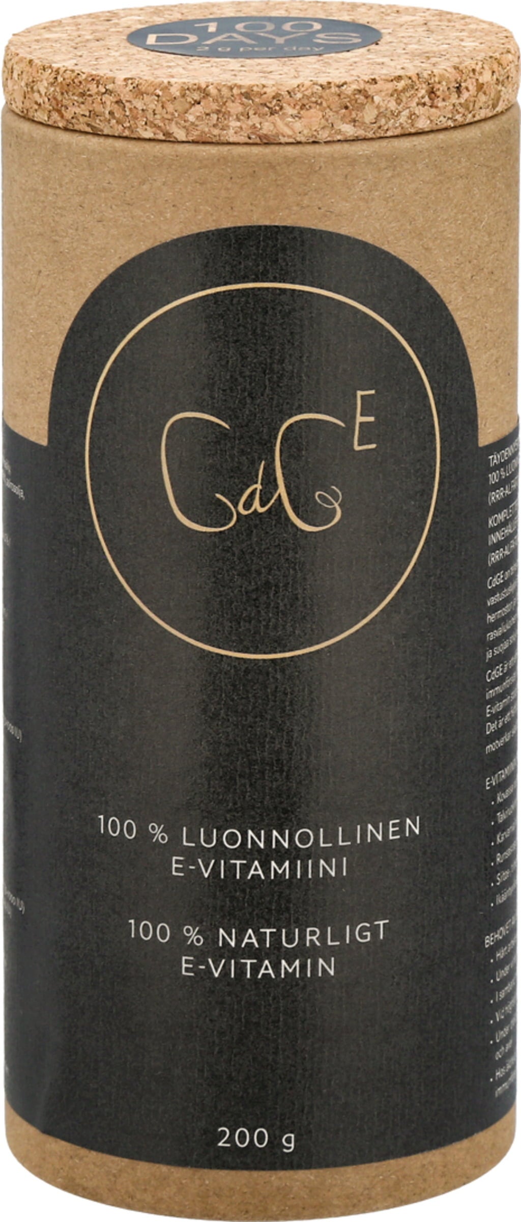 Z dodatkom vitamina E v prahu Chia de Gracia "CdG-E - Natural Vitamin E" vaš konj in/ali pes prejme čisti praškasti dodatek, zasnovan kot krmni dodatek. Prašek vsebuje samo naravni alfa-tokoferol (oblika RRR) s 500 ie na gram.