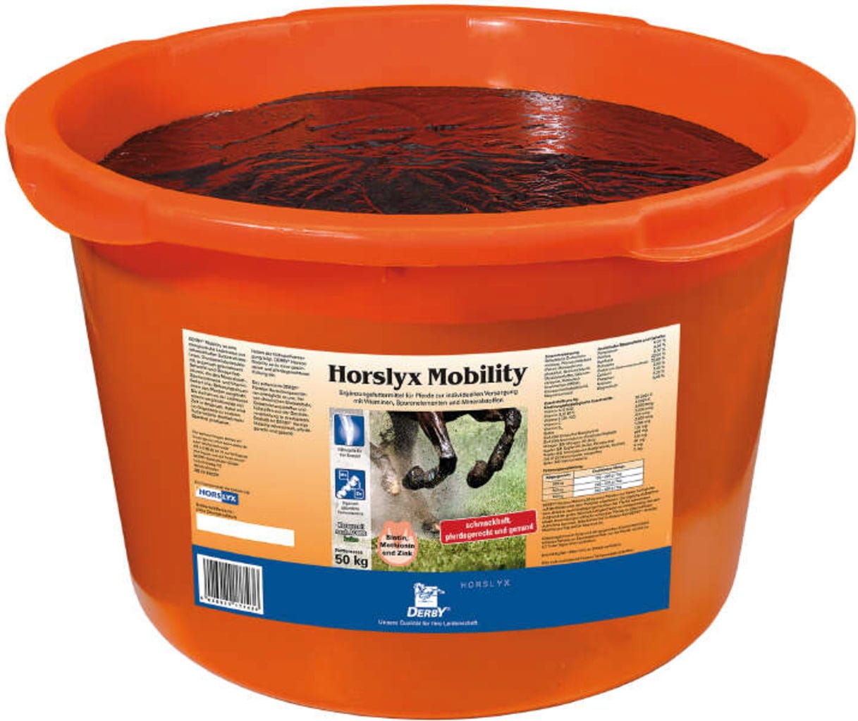 Vsebuje glukozamin, ki spodbuja sintezo hrustanca, zmanjša degradacijo hrustanca in preprečuje poškodbe hrustanca. Zaradi dodatnega pozitivnega vpliva na mišično-skeletni sistem je primerna krma za mladostne konje. Toda tudi starejši in oboleli konji imajo koristi od HORSLYX Mobility, zato je lastna regeneracija hrustanca podprta.