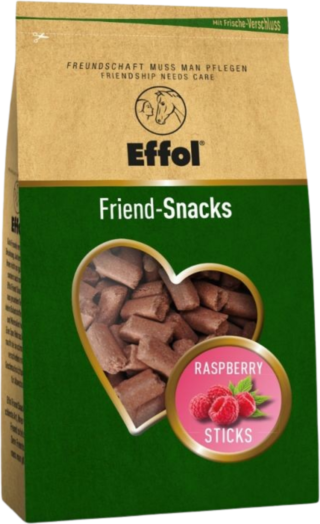 Iščete način, kako svojemu konju po odličnem treningu ali kar tako reči "hvala"? Priboljški Friend-Snacks z okusom maline so idealna izbira za vse jahače, ki cenite kakovostno nagrado. Te okusne palčke temeljijo na izbranih žitih in vašemu štirinožnemu partnerju zagotavljajo dragocene vlaknine ter pomembne vitamine in minerale. Obogatene s kančkom melase iz trstnega sladkorja so tako neustavljivo okusne, da bodo nad njimi navdušeni tudi izbirčni konji.