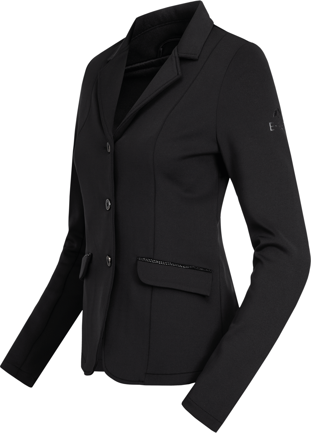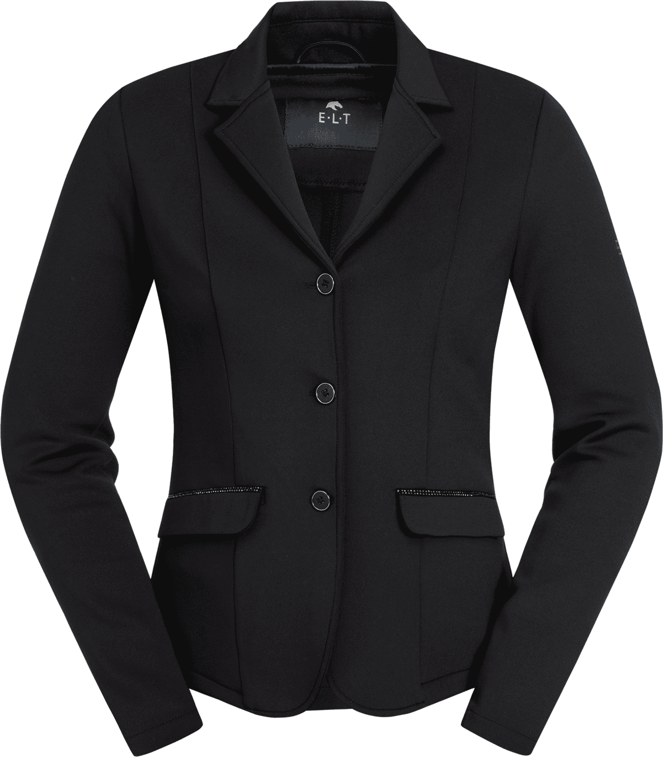 Zračen tekstil vam pomaga ohranjati prijetno telesno klimo tudi v stresnih turnirskih situacijah. Poseben poudarek dajejo dekorativni kristalčki na obeh stranskih žepih, ki suknjiču podarijo plemenit pridih. Zahvaljujoč klasičnima razporkoma na hrbtni strani suknjič v sedlu pade izjemno harmonično in zagotavlja profesionalen videz.