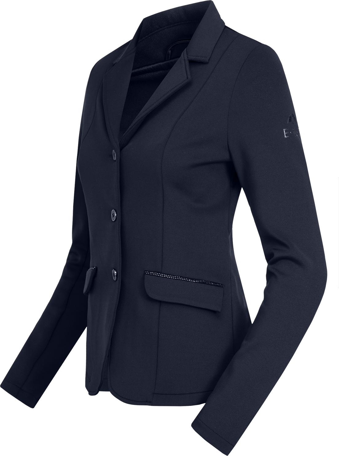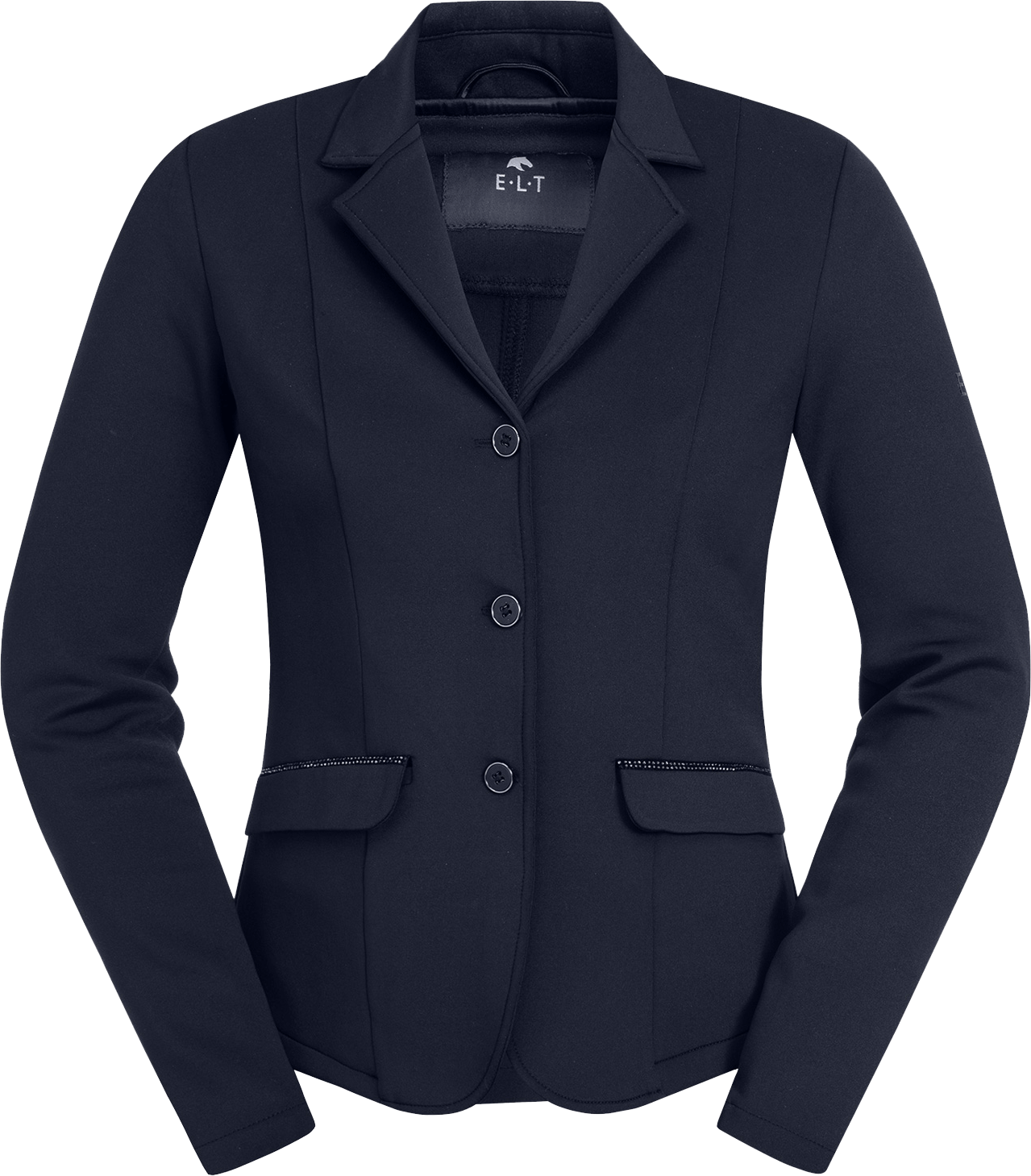 Zračen tekstil vam pomaga ohranjati prijetno telesno klimo tudi v stresnih turnirskih situacijah. Poseben poudarek dajejo dekorativni kristalčki na obeh stranskih žepih, ki suknjiču podarijo plemenit pridih. Zahvaljujoč klasičnima razporkoma na hrbtni strani suknjič v sedlu pade izjemno harmonično in zagotavlja profesionalen videz.