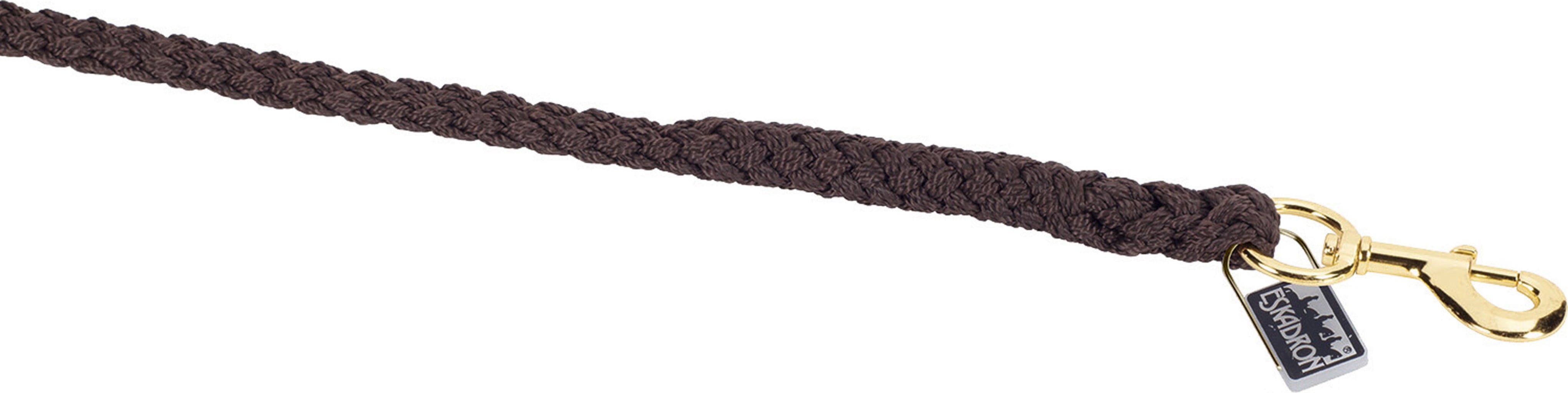 Ta povodec združuje robustno polipropilensko prejo z medeninasto prevlečenim karabinom. Imenska ploščica omogoča hitro identifikacijo vašega konja.