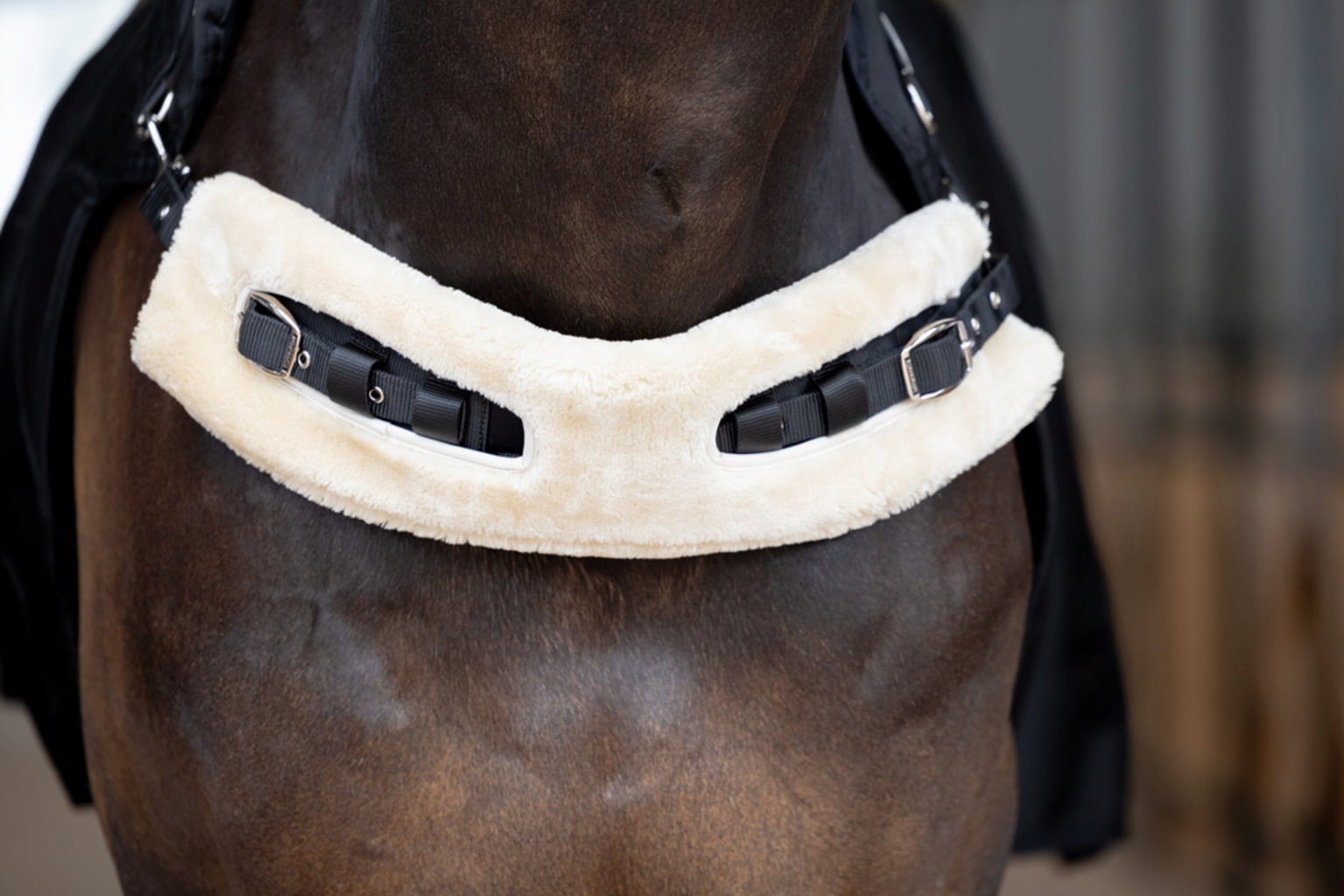 S sprehajalnim pregrinjalom Eskadron Delta II ste popolnoma opremljeni za aktivnosti sprehajanja vašega konja. Pregrinjalo zanesljivo ščiti pred vetrom in dežjem ter zaradi podloge iz flisa zagotavlja udobno prileganje. Prsni del, nastavljiv po višini in širini, vam omogoča, da prilagodite prileganje. Podloga iz umetnega krzna na prsnem zapenjanju zagotavlja dodatno zaščito pred drgnjenjem. Praktični detajli, kot so prečni pasovi in trak za križ, zaščiten s cevjo, zagotavljajo varen oprijem konja med vsakim gibanjem.
