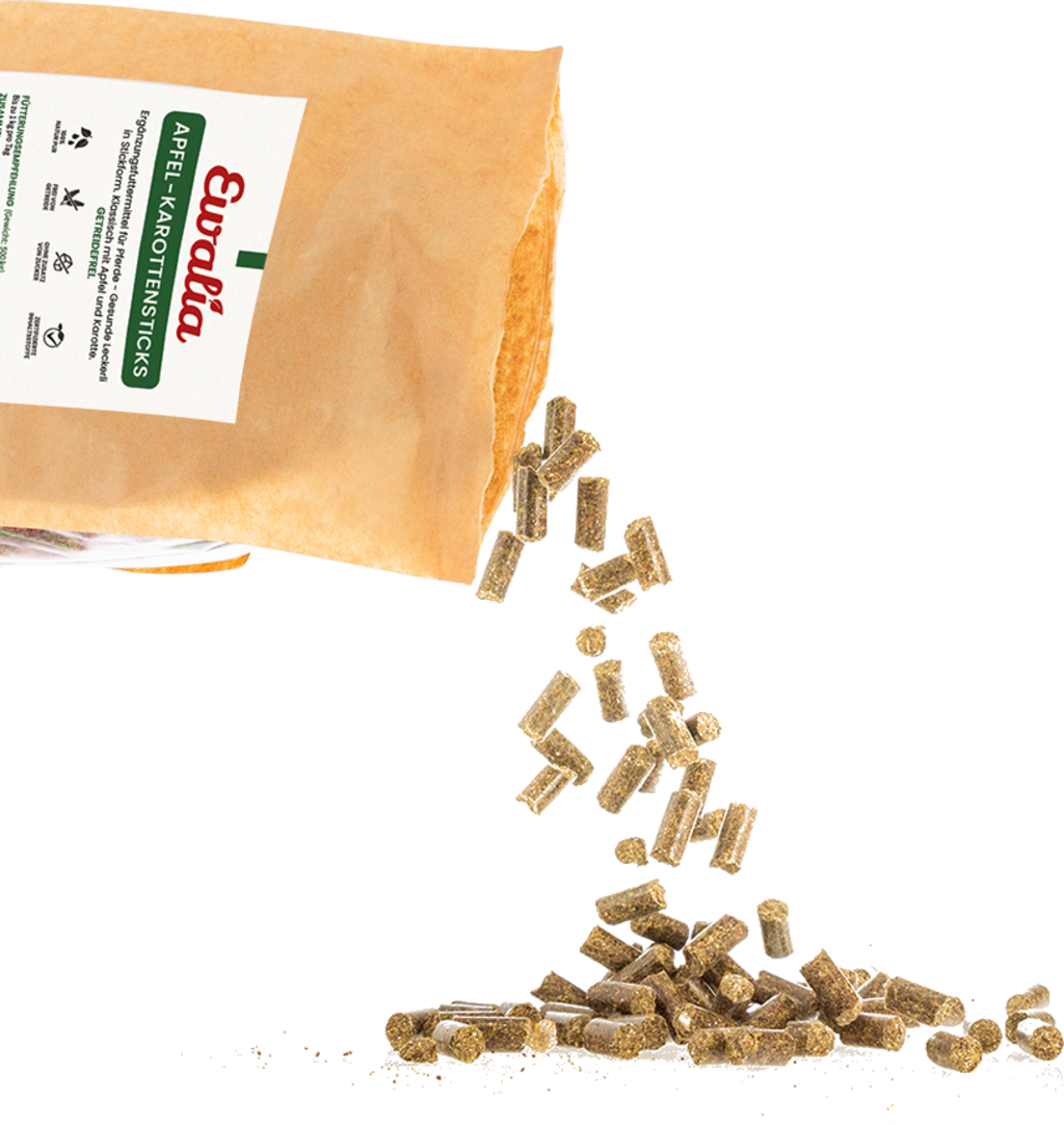 Te jabolčno-korenčkove palčke brez žit so okusen priboljšek, s katerim lahko svojemu konju privoščite prav posebno poslastico. Zaradi kompaktne oblike lahko palčke vzamete s seboj, kamor koli greste, tako da imate vedno pri roki slasten priboljšek za svojega konja.