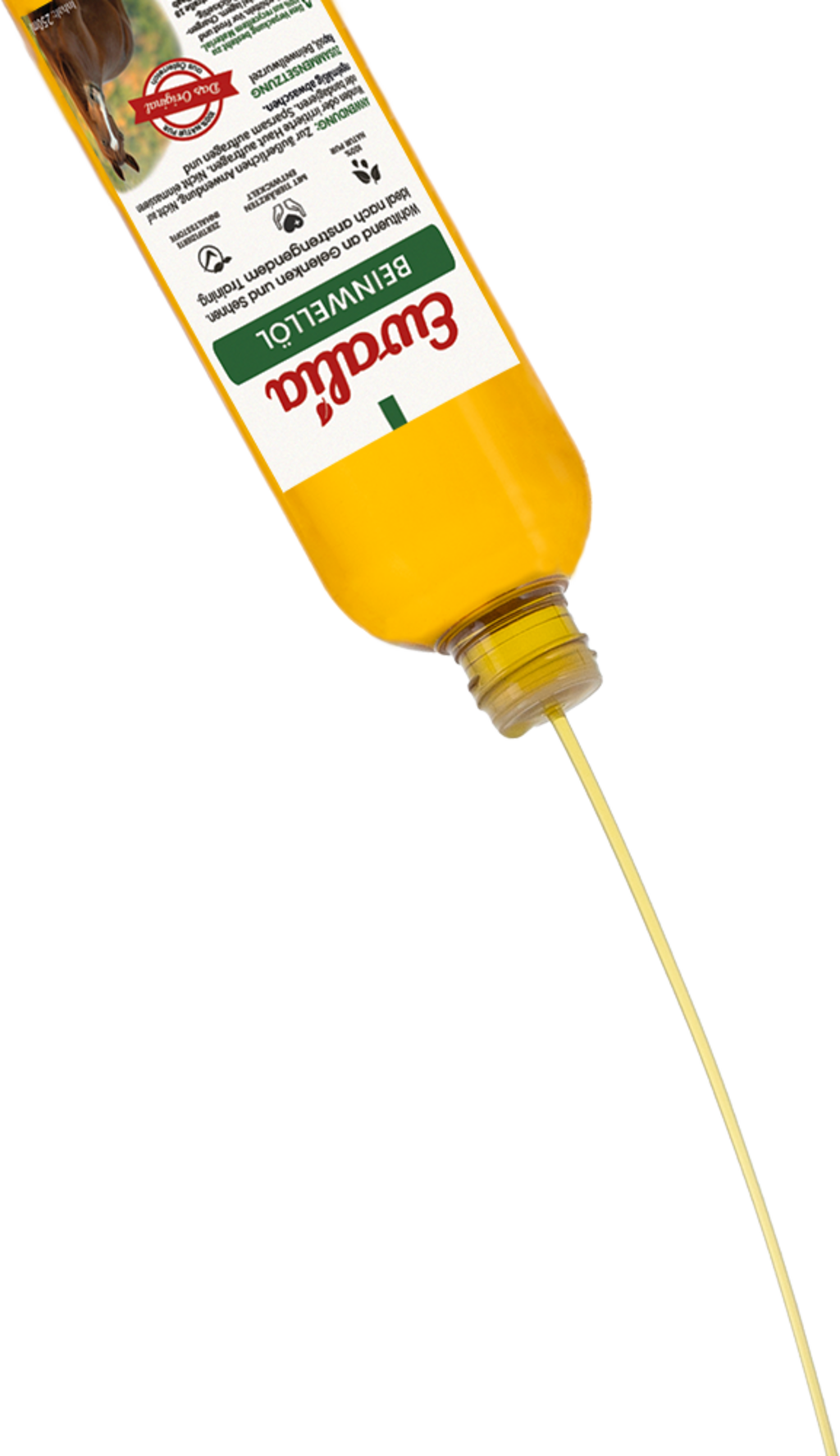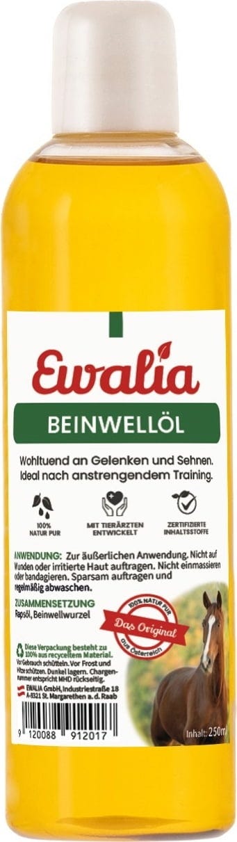 Negovalno olje za konje krepi kite in sklepe. Optimalna okrepitev konja po naporni vadbi. Izdelek se lahko uporablja tudi pri kroničnih in akutnih tetivah ali sklepih.