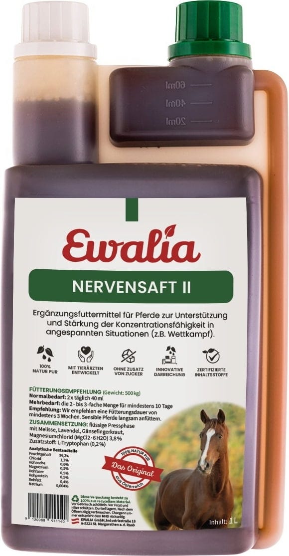 Sok za živce II iz skupine EWALIA je povsem primeren za pomoč pri tekmovanjih in turnirijih. Prav tako je idealen pri tesnobi, živčnosti, napetosti in nervozi.