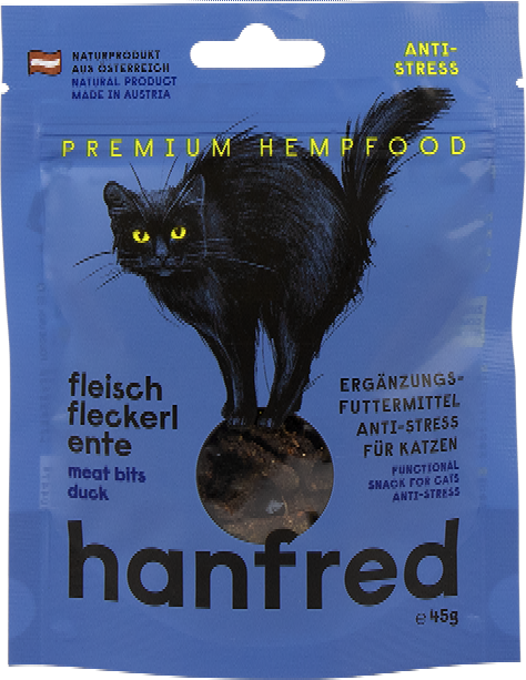 Če je vaša mačka občutljiva na spremembe ali stresne situacije, je ta prigrizek lahko dobra izbira. Hanfred mesne pogače so narejene iz 95 % mesa in 5 % konopljinega prahu - popolnoma brez žit in umetnih dodatkov.