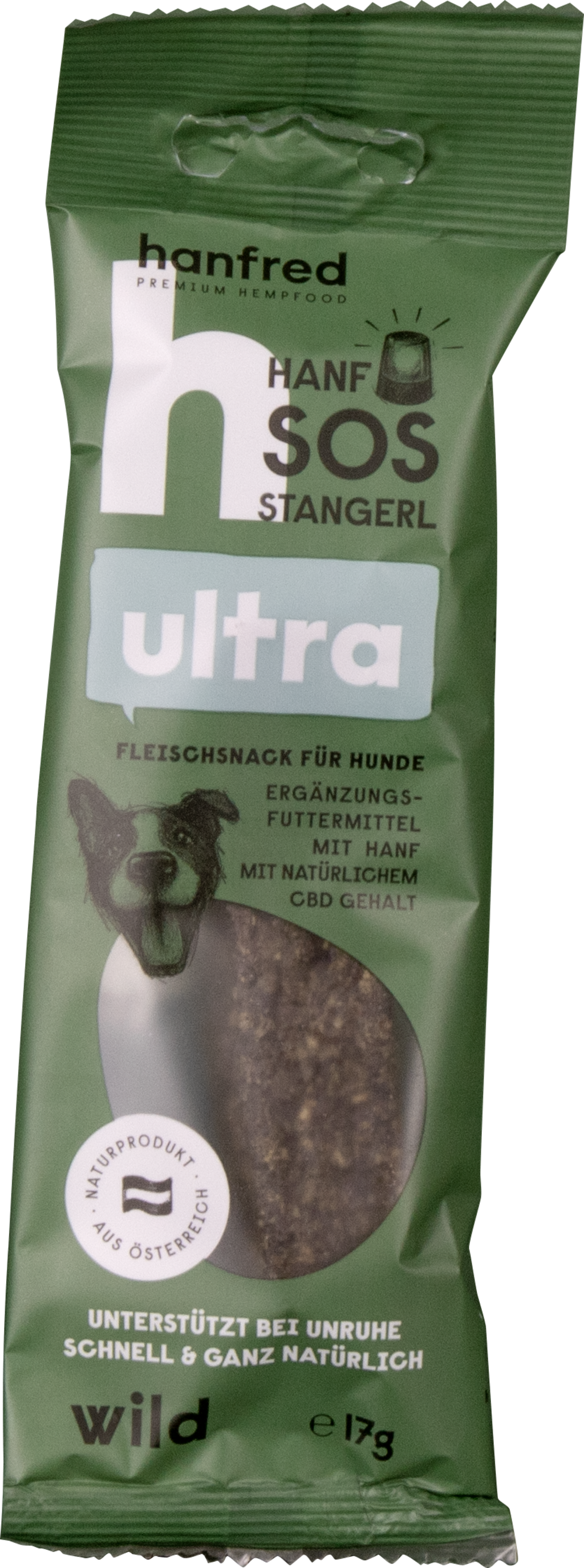 SOS palčke Ultra vsebujejo 25 % konoplje in so idealne kot dopolnilna hrana za vašega psa - še posebej na potovanjih ali v neznanih situacijah. Narejene so iz sočnega mesa in konopljinega prahu, brez nepotrebnih dodatkov.