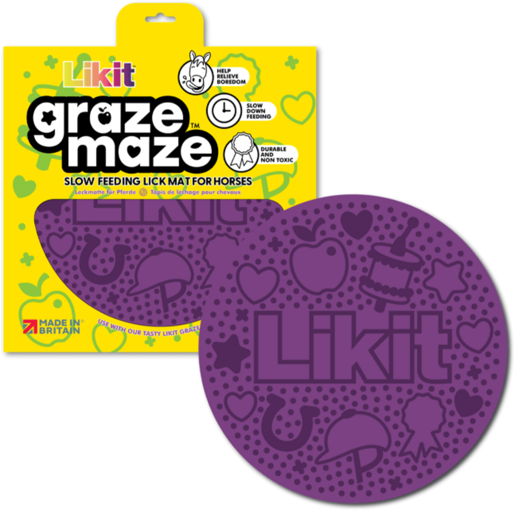 Z Graze Maze znamke Likit lahko svojemu konju ponudite smiselno aktivnost v hlevu ali v ogradi. Lizalno podlogo lahko preprosto prekrijete z Pasta za Graze Maze, pire krompirjem ali drugo krmo ter jo po želji kombinirate s koščki korenja ali priboljški. Na ta način lahko nenehno ustvarjate nove majhne ideje za hranjenje, ki bodo vašega konja zaposlile in mu zagotovile raznolikost.