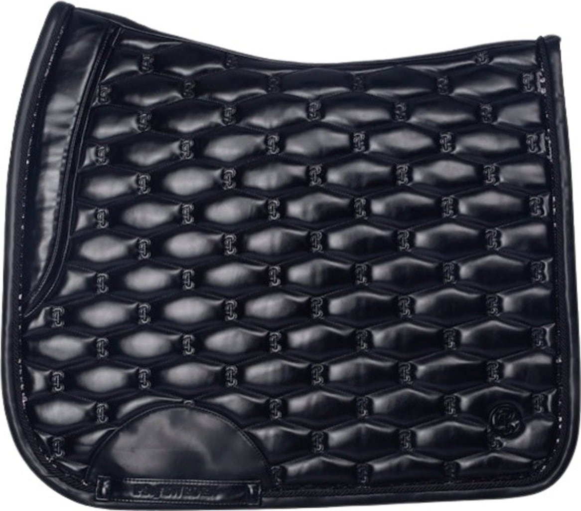Bleščeča kovinska podsedelnica združuje eleganten lesk z vrhunsko funkcionalnostjo. Anatomska oblika konju ponuja dodaten prostor pri vihru, kar podpira svobodo gibanja in udobje. Srednje oblazinjenje zagotavlja, da ostane varno na svojem mestu.