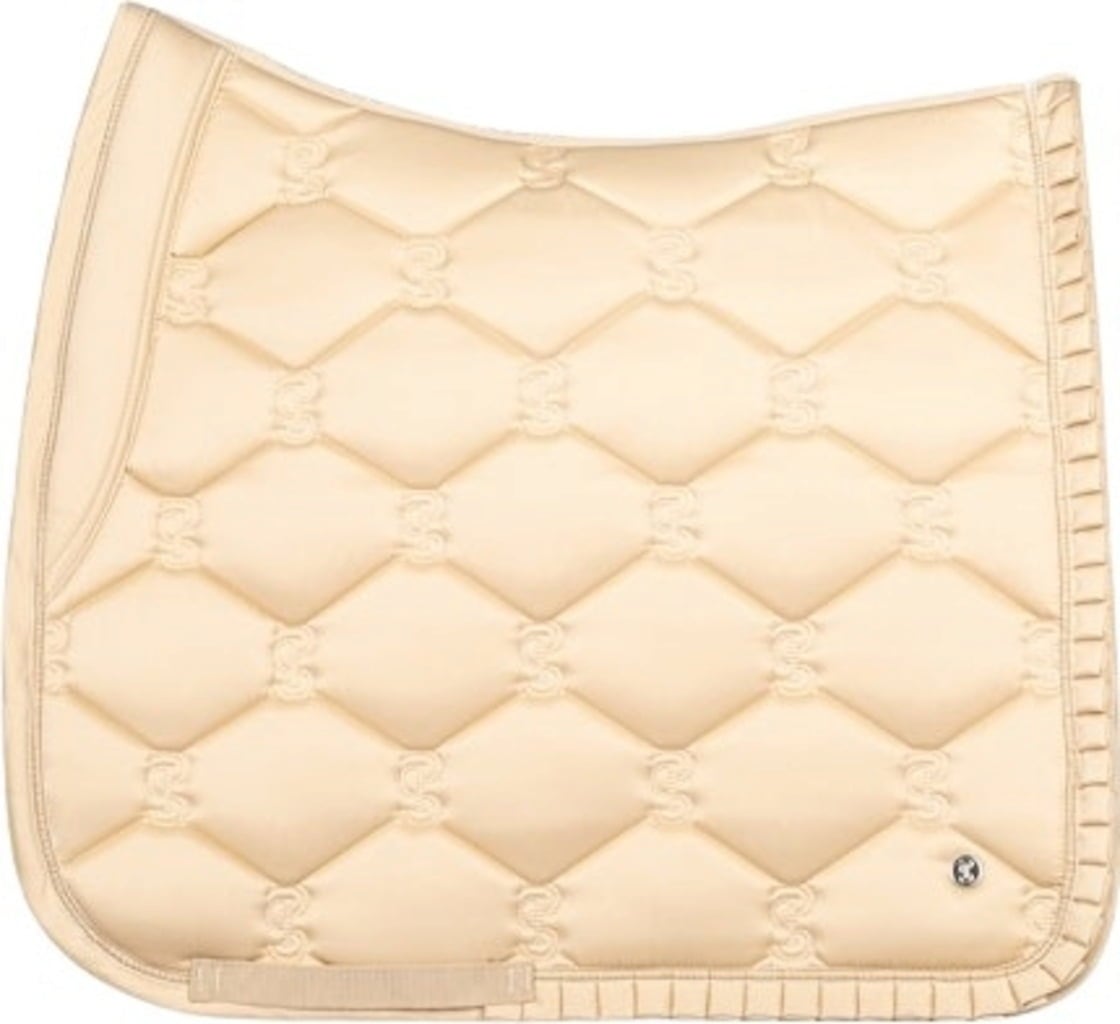 Z dresurno podsedelnico Ruffle znamke PS of Sweden boste na trening ali tekmovanje vnesli eleganco in funkcionalnost. Podsedelna blazinica je anatomsko oblikovana in konju ponuja dodaten prostor pri vihru. Preizkušene blazinice Stop Cushions zagotavljajo varno prileganje in zanesljivo preprečujejo zdrs.