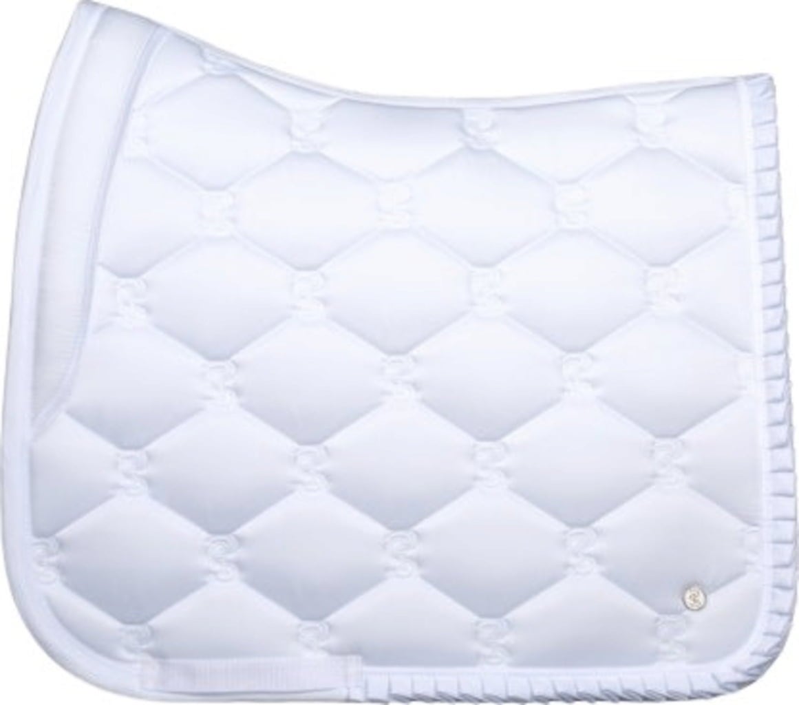 Z dresurno podsedelnico Ruffle znamke PS of Sweden boste na trening ali tekmovanje vnesli eleganco in funkcionalnost. Podsedelna blazinica je anatomsko oblikovana in konju ponuja dodaten prostor pri vihru. Preizkušene blazinice Stop Cushions zagotavljajo varno prileganje in zanesljivo preprečujejo zdrs.