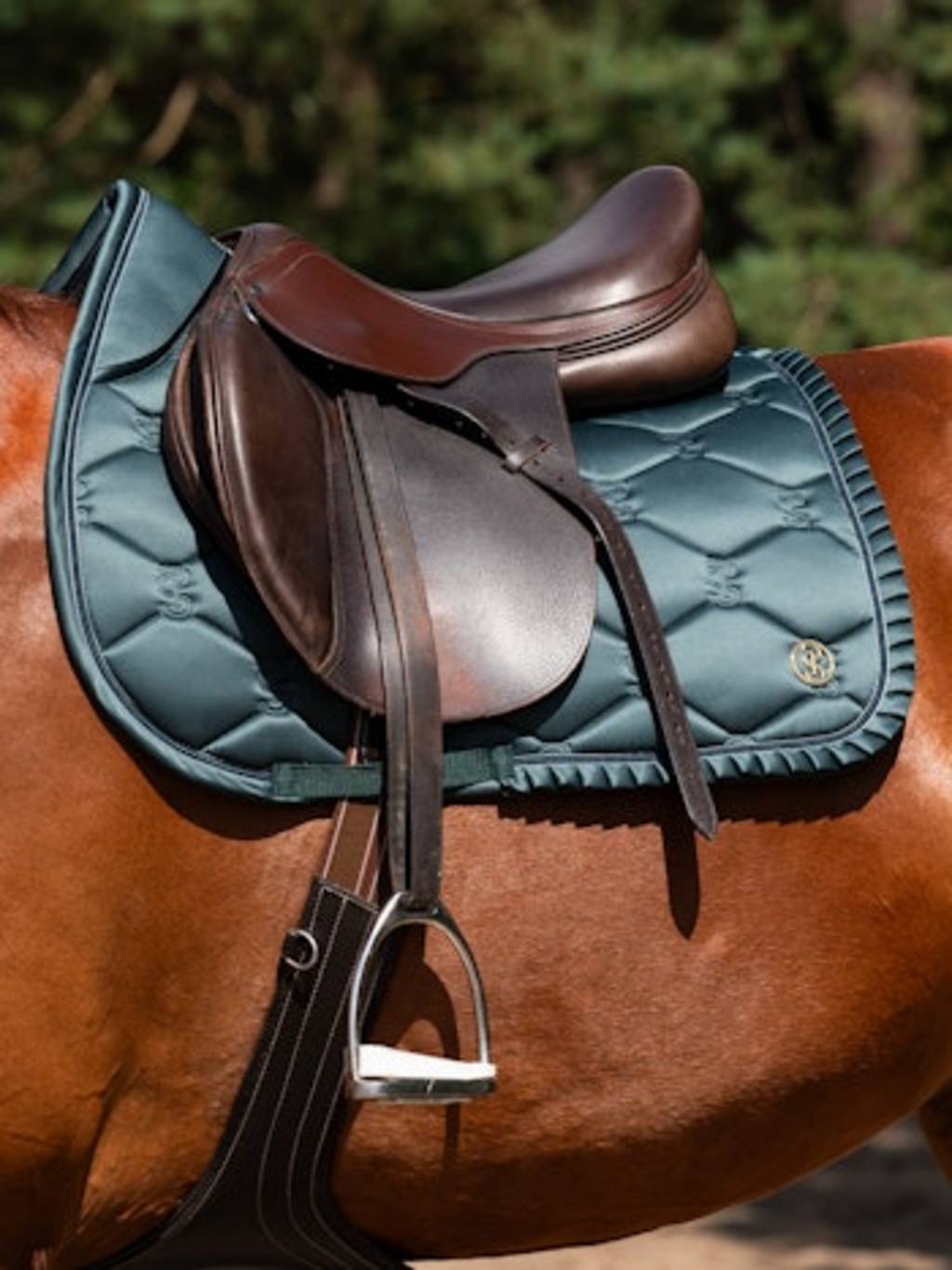 Skakalna podsedelnica Ruffle znamke PS of Sweden združuje eleganten dizajn s funkcionalnimi detajli. Njena anatomska oblika konju ponuja dodaten prostor pri vihru, kar zagotavlja večjo svobodo gibanja. Srednje debelo oblazinjenje z materialom, ki blaži udarce, in integriranimi zaporami zanesljivo preprečuje zdrs in zagotavlja dodatno stabilnost vašega sedla.