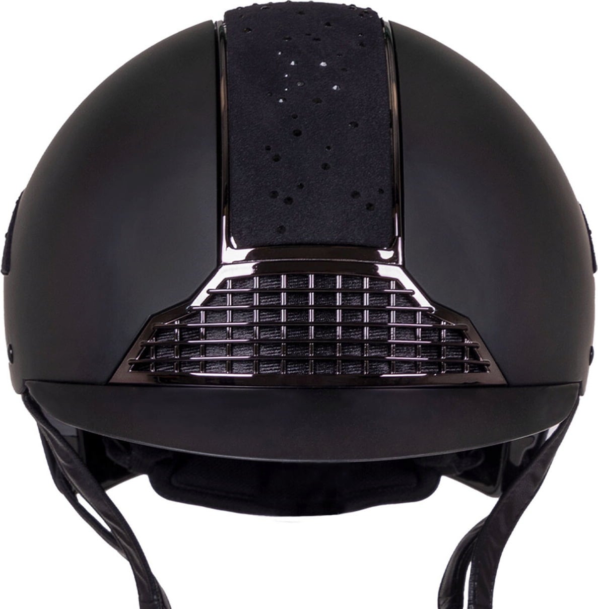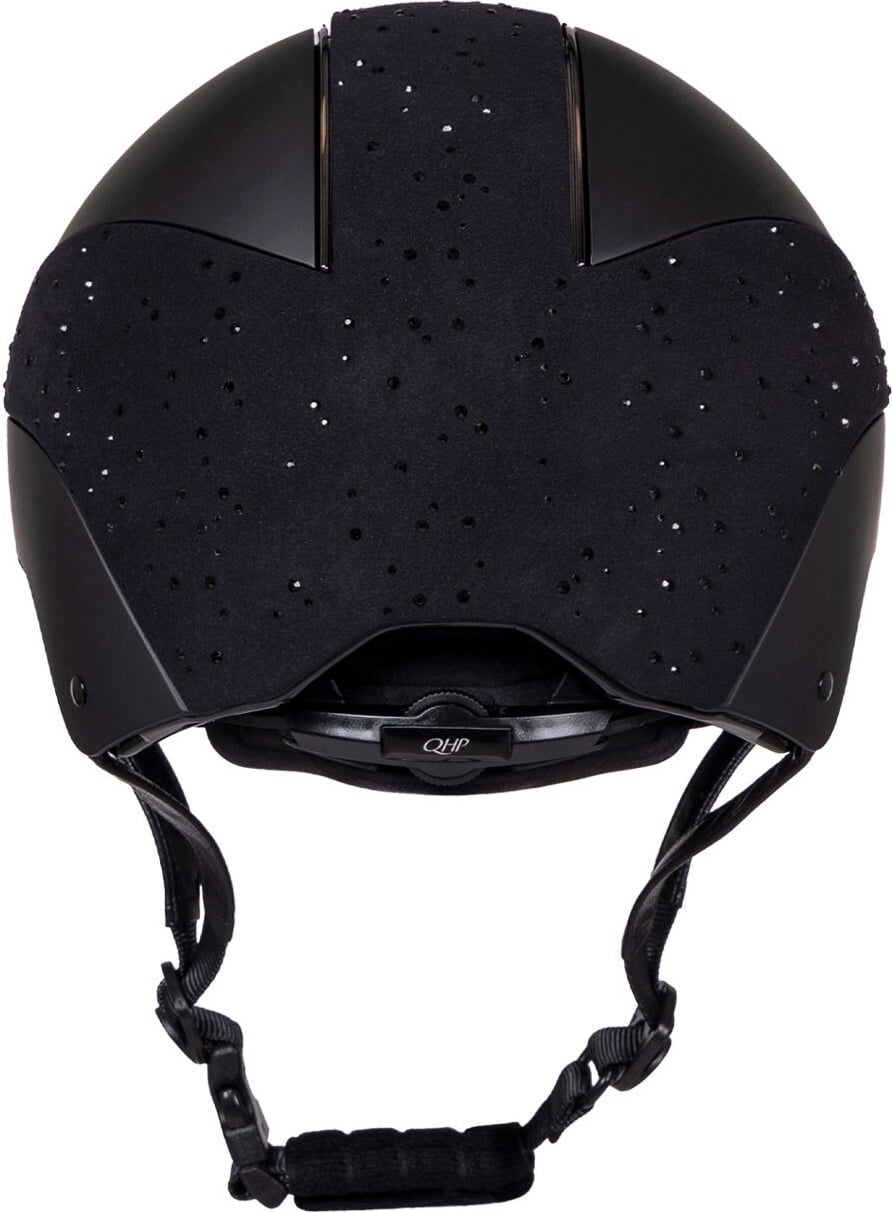 Jahalna čelada Ohio znamke QHP je zelo udobna in elegantna čelada, ki vas bo spremljala na treningih in tekmovanjih. Navdušuje s svojim osupljivim videzom in bleščečimi okrasnimi kamni, integriranimi v zunanjo lupino. Ta lupina je izdelana iz različnih visokokakovostnih materialov, kar čeladi daje eleganten videz. Kljub robustni zasnovi je čelada zelo lahka.