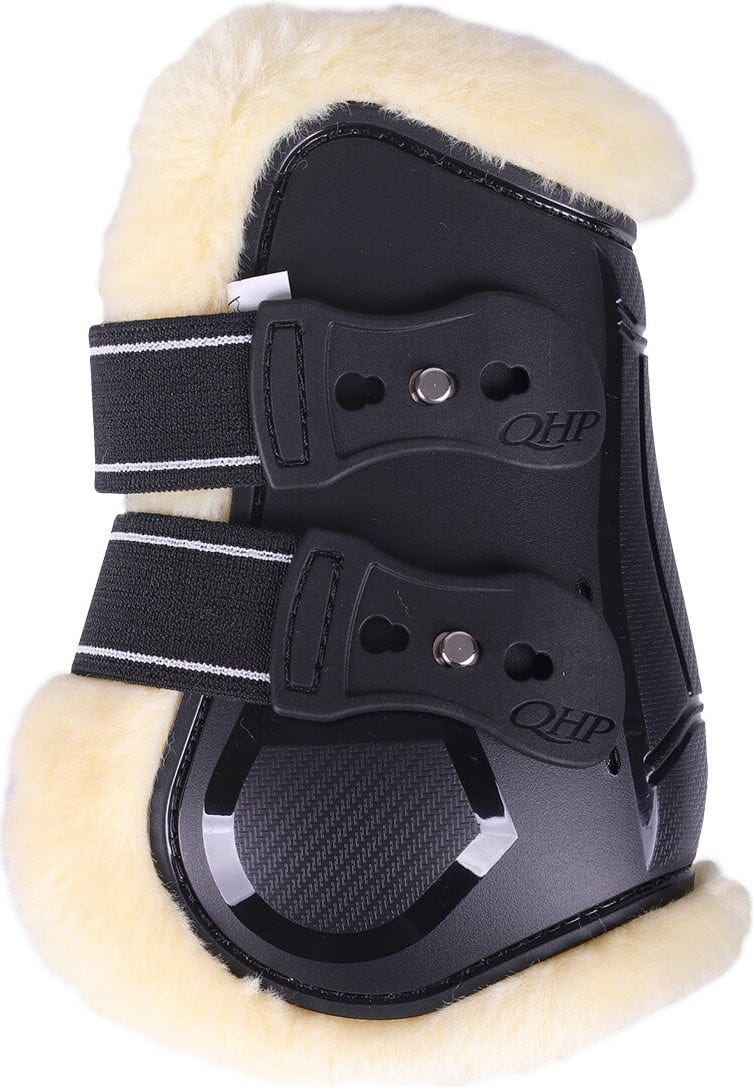 - Podloga iz umetnega krzna za dodatno udobje: Notranjost je podložena z mehko podlogo iz umetnega krzna, ki učinkovito preprečuje drgnjenje in draženje, zaradi česar so ti ščitniki idealni za konje z občutljivo kožo.
