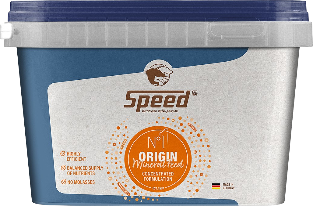 SPEED N°1 Origin ponuja uravnoteženo osnovno formulo za vse konje. Ta mineralni koncentrat krme zagotavlja esencialne minerale, elemente v sledovih in vitamine za trajnostno podporo zmogljivosti. Prebiotični pivski kvas lahko prispeva k izboljšanemu delovanju črevesja in podpira absorpcijo hranil. Tradicionalni recept, prilagojen trenutnim raziskovalnim ugotovitvam.