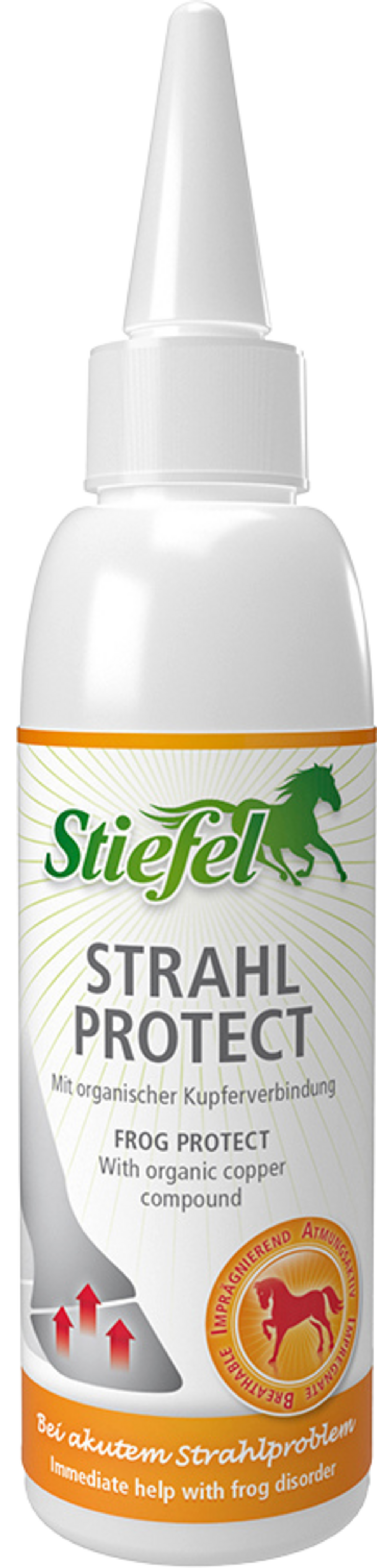 HUFPROTECT je izdelek, ki je bil posebej razvit za uporabo pri težavah z žabico ali kopitom. Posebnost izdelka Hufprotect iz skupine Stiefel se skriva v povezavi zelo aktivne nosilne substance z organsko spojino bakra. Ta kombinacija impregnira žabico in kopito. Tekočina prodre globoko v brazdo žabice in tako razvije zelo negovalen učinek in hkrati ohranja zračnost kopita.