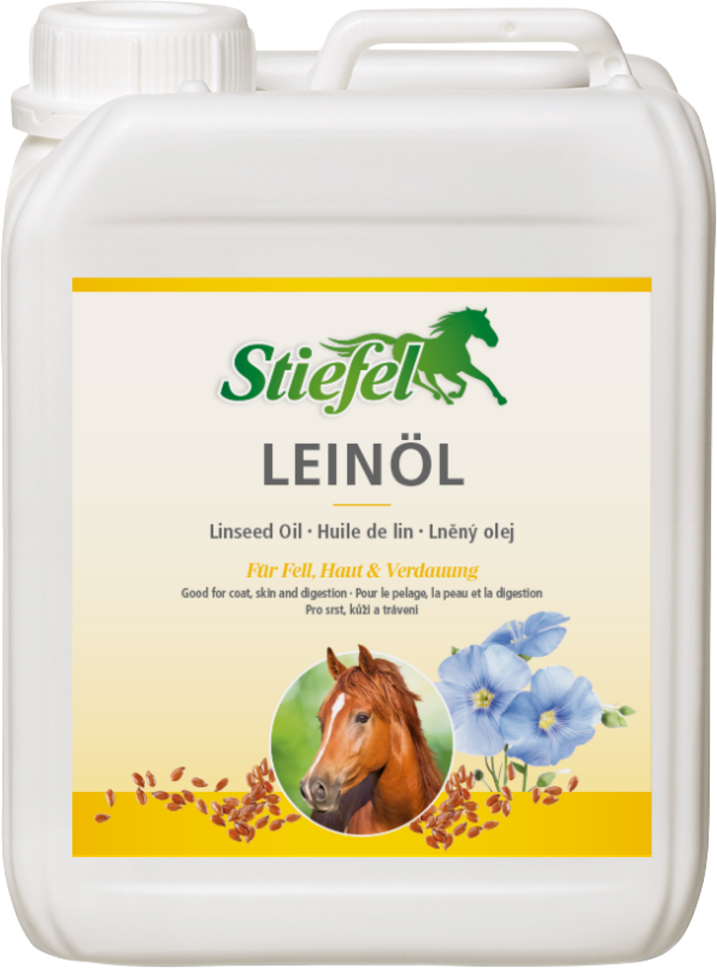 Laneno olje Stiefel je hladno stiskano, čisto naravno olje, bogato z maščobnimi kislinami omega-3, zlasti alfa-linolensko kislino (C18:3), vitaminom A, vitaminom E in vitaminom D. Zaradi svoje dragocene sestave lahko laneno olje pozitivno vpliva na kakovost konjske kože in dlake ter prispeva k zdravi prebavi.