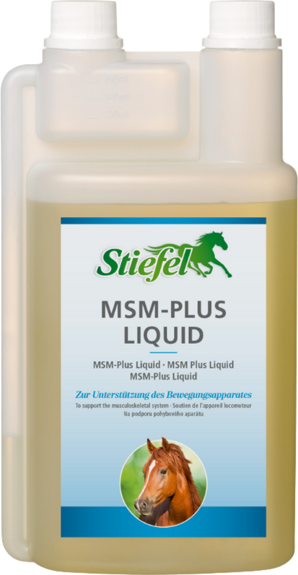 Stiefel MSM-Plus Liquid vsebuje kombinacijo MSM, glukozamina in hondroitina za zdravo delovanje sklepov. Podpira tudi zdravo dlako in rast kopit ter prispeva k naravnemu razvoju vezivnega tkiva.