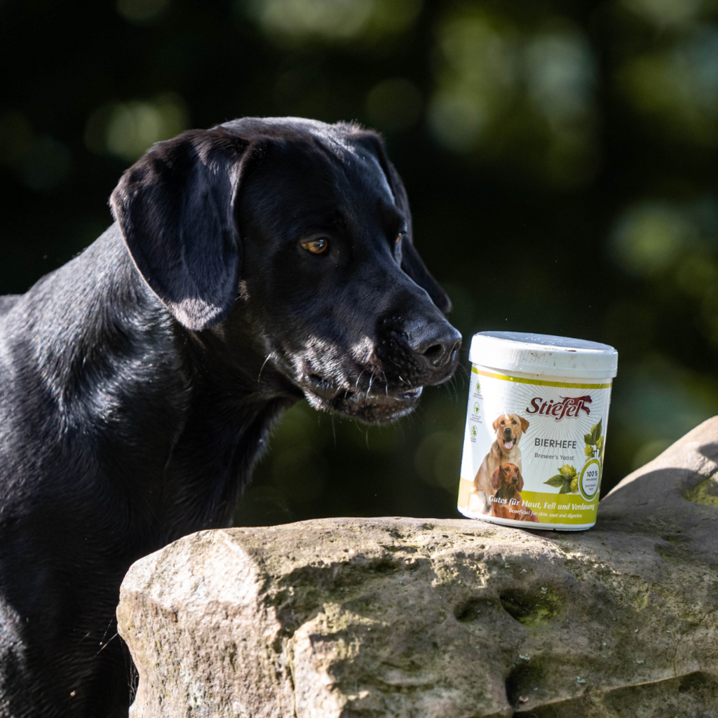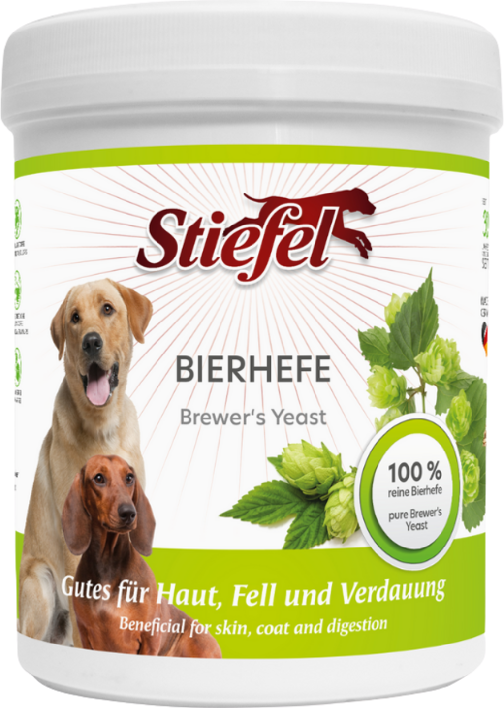 Pivski kvas Stiefel, zahvaljujoč vitaminom B, ki so naravno prisotni v kvasu, lahko prispeva k normalni prebavi in presnovi pri psih. Zaradi tega je pivski kvas še posebej primeren v času menjave dlake. Za ta izdelek je 100% pivski kvas fino mlet, kar zagotavlja enostavno sprejemanje in absorpcijo po mešanju s hrano.
