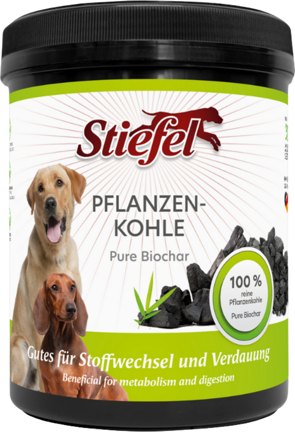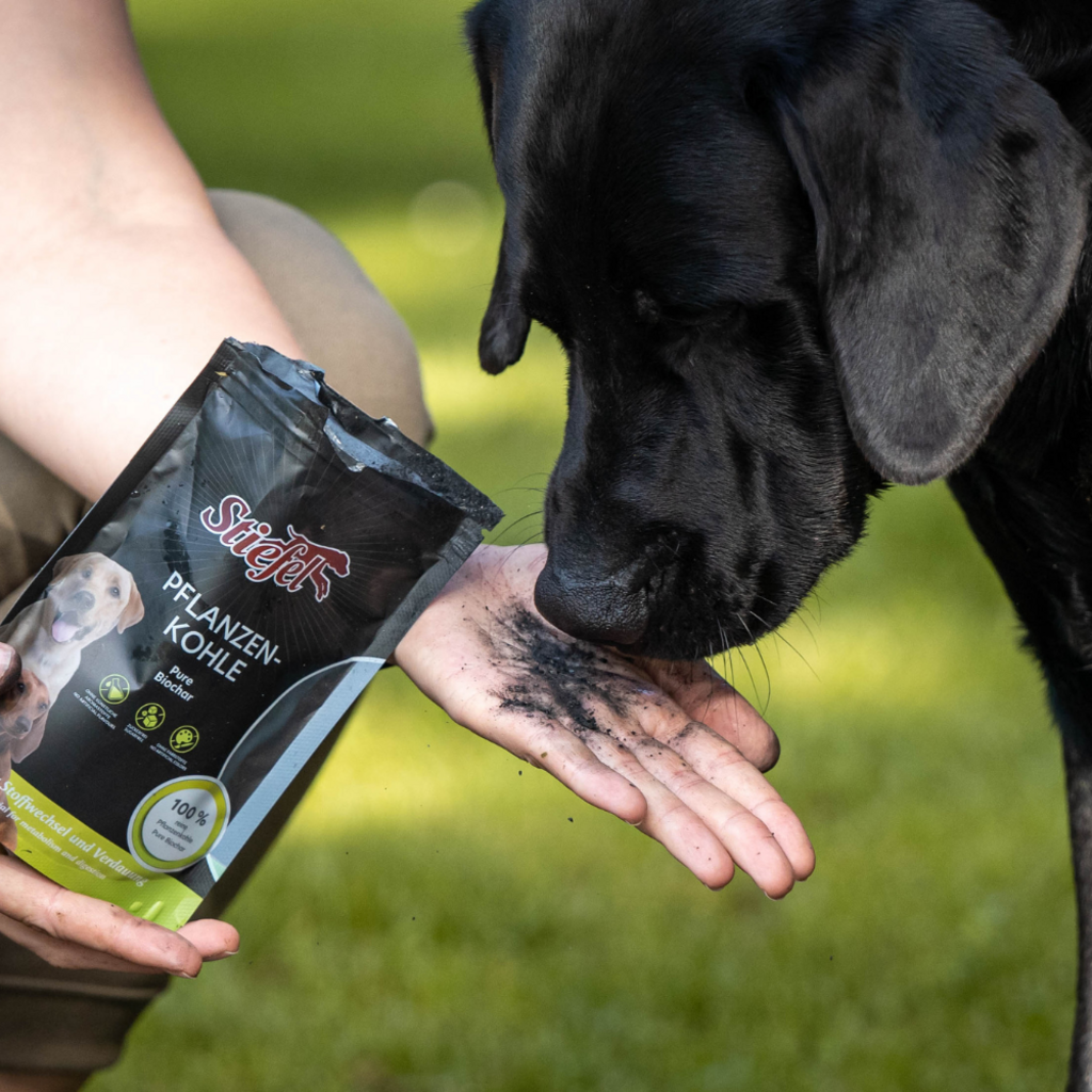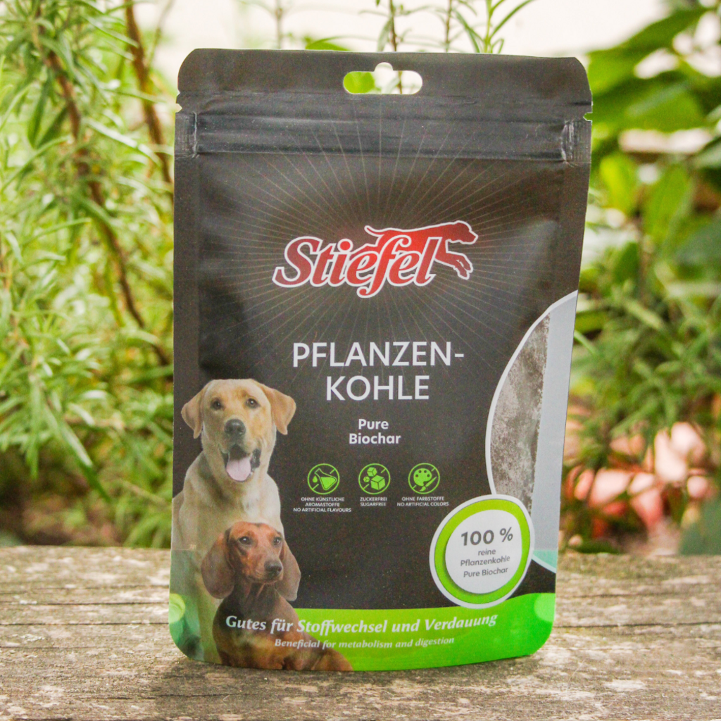 Rastlinsko oglje Stiefel je sestavljeno iz 100% čistega rastlinskega oglja in lahko podpira normalno prebavo in presnovo pri psih.