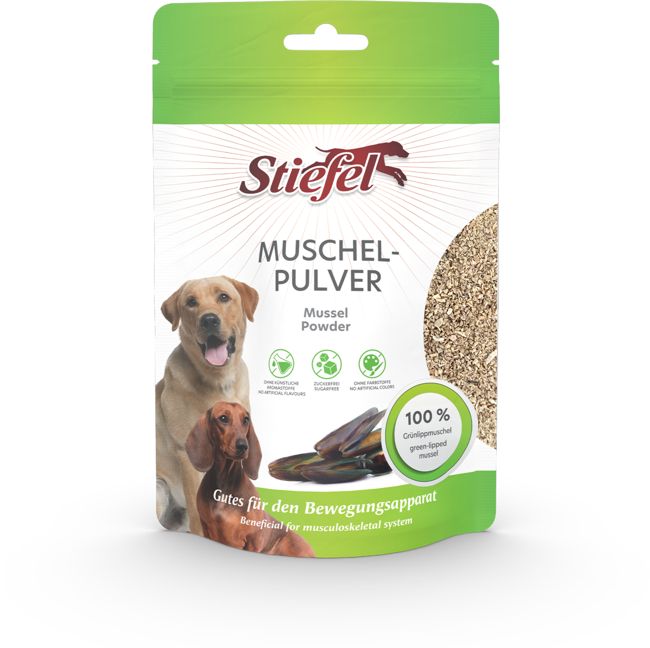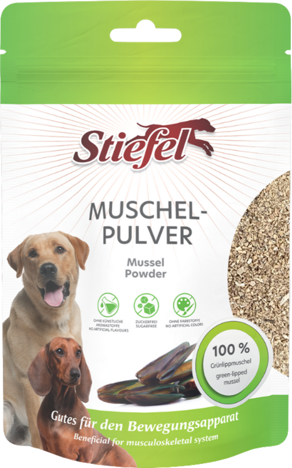 Stiefel prah iz školjk je sestavljen iz100 % čistega prahu novozelandskih zelenoustih školjk. Ta prah lahko prispeva k podpori zdravega mišično-skeletnega sistema. Formulacija je optimizirana z glikozaminoglikani, ki so znani po svoji sposobnosti krepitve vezivnega tkiva.