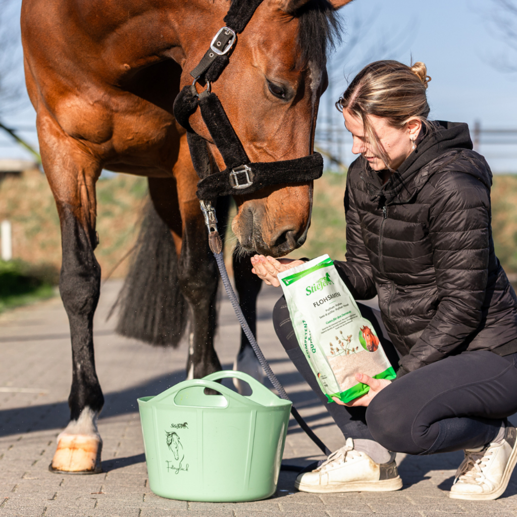 OPOMBA: Lupine psiliuma morajo biti vedno popolnoma namočene z dovolj vode, sicer lahko pride do zaprtja. Poleg tega naj ima konj vedno neomejen dostop do vode.