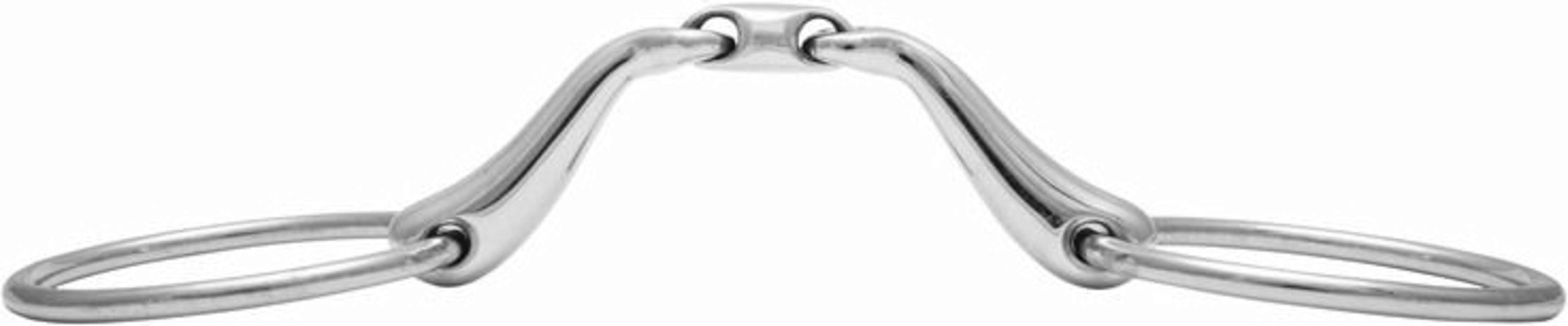 Dvočlenasta brzda Fine Line znamke Stübben. Anatomska oblika brzde se popolnoma prilagodi konjskim ustom in s tem okrepi stranske opore. Idealna kombinacija s kandaro Fine Line, saj sredinski člen z ukrivljenimi stranskimi deli odlično dopolnjuje relief jezika kandare Fine Line.