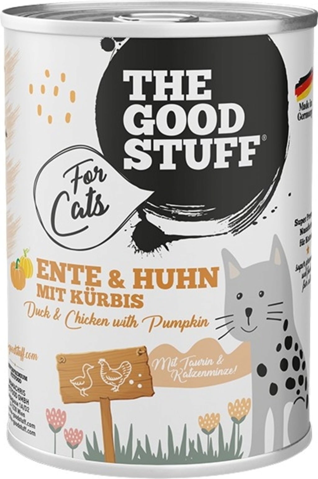 Z raco in piščancem z bučo znamke The Goodstuff boste svoji mački postregli z beljakovinami bogatim, uravnoteženim obrokom odličnega okusa. 66 % mesa, vključno s svežo raco in piščancem, je kombinirano z nežno kuhano zelenjavo, kot je buča, in ščepcem mačje mete.