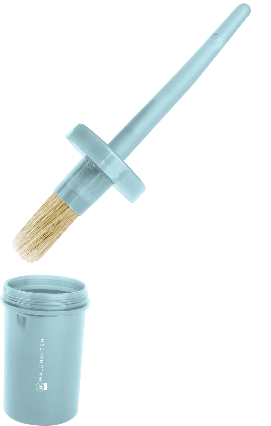 Ste naveličani, da se vam čopič za kopita zlepi in da je vaša škatla za negovalne izdelke stalno umazana? Potem je ta čopič s posodico znamke Waldhausen popolna in čista rešitev za vas!