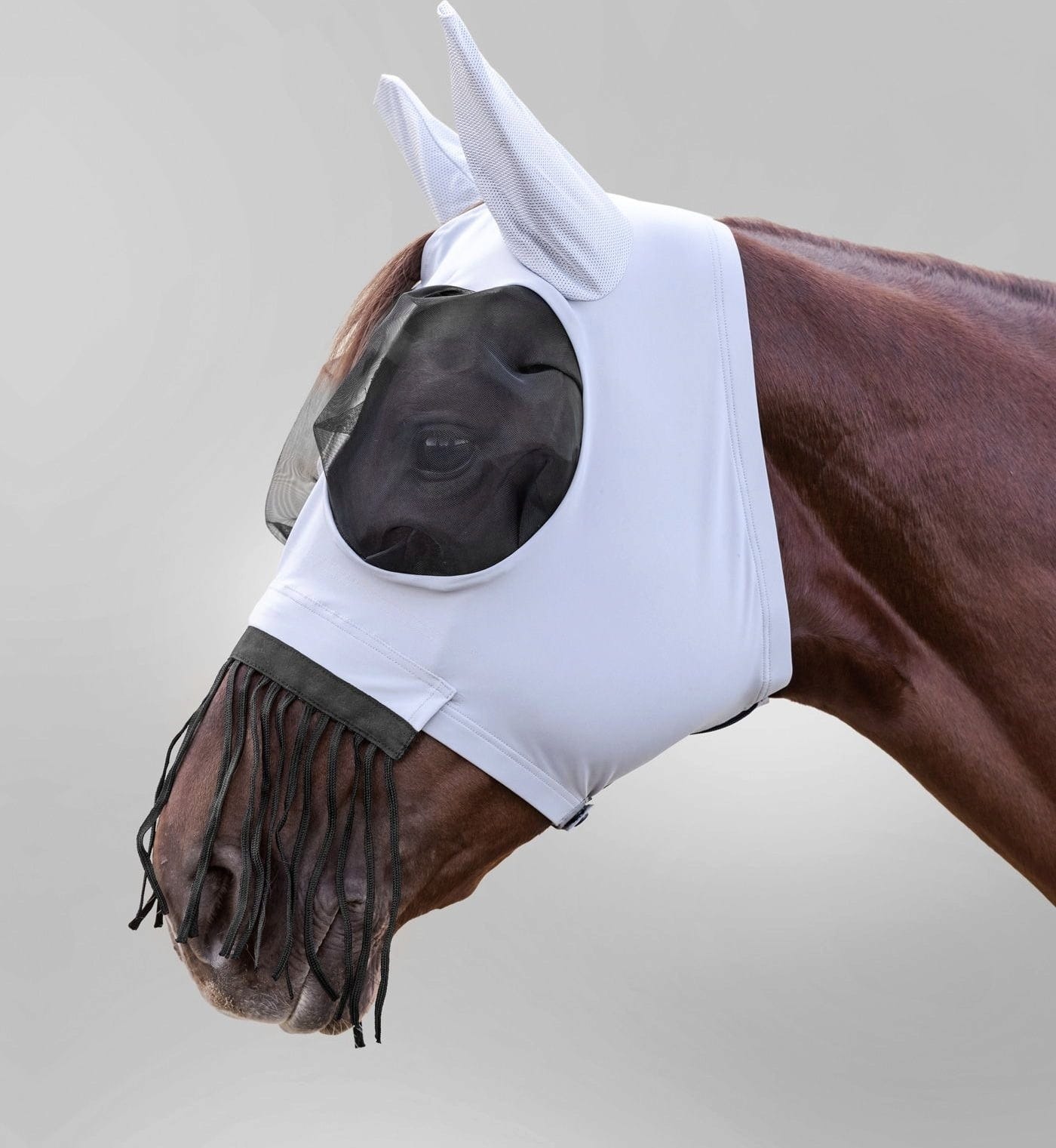 Mehka flis obroba na vseh robovih zagotavlja udobno prileganje, zanesljivo preprečuje drgnjenje in pritisk. Zahvaljujoč integriranim ušesnim vstavkom iz zračne mrežice je konj popolnoma zaščiten, prozorna mrežica za oči pa omogoča neoviran pogled. Široko zapiranje z ježkom omogoča enostavno oblačenje in zagotavlja varno prileganje. Funkcionalen dodatek, ki odlično združuje udobje in aktivno zaščito pred mrčesom.