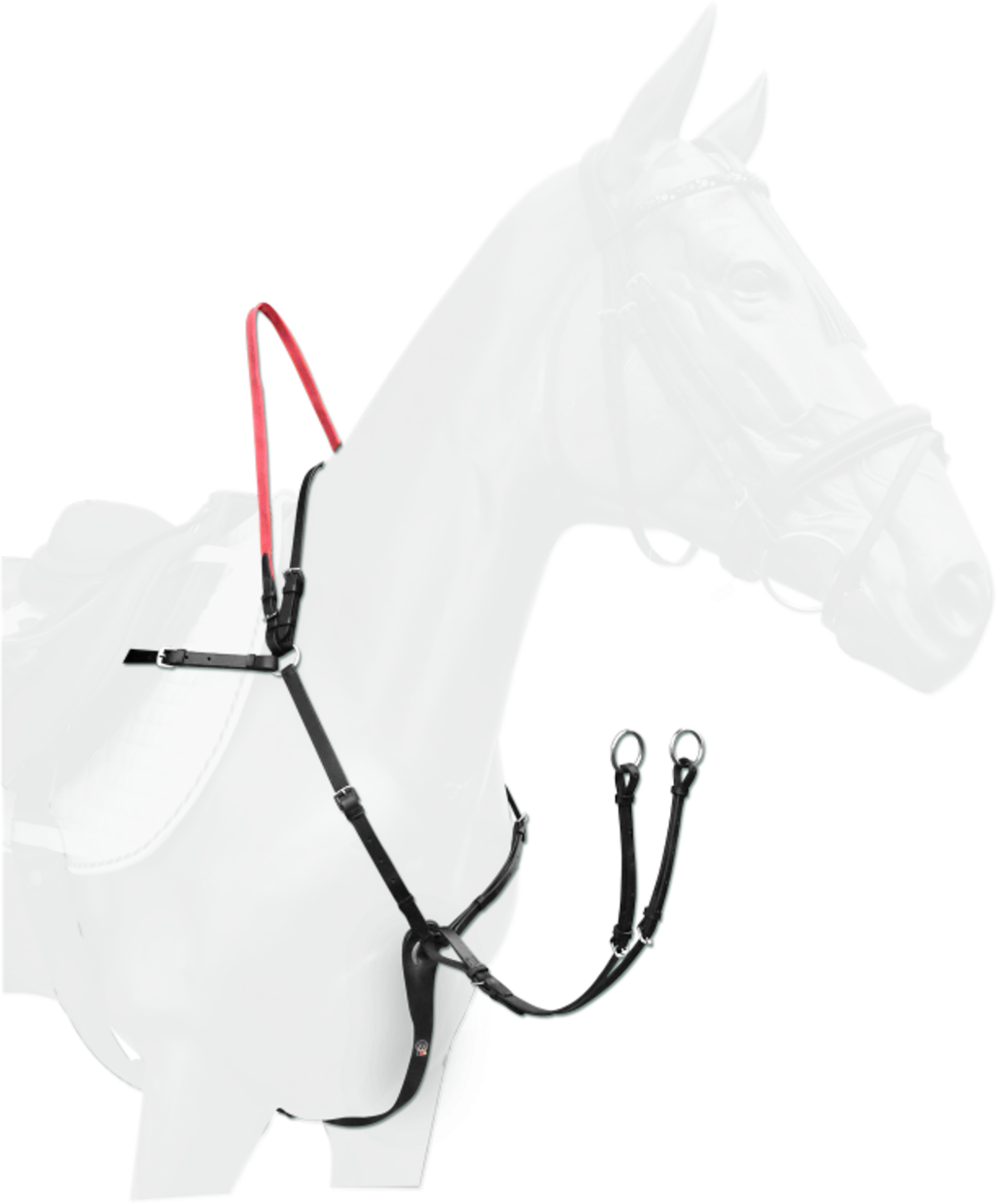 Integrirane varnostne vajeti zagotavljajo zanesljivo oporo, ko je to potrebno. Zaradi povezave z oprsnico vajeti ne delujejo le na vašo roko, temveč tudi nežno na konjeve prsi, kar vam lahko pomaga hitro ponovno prevzeti nadzor.