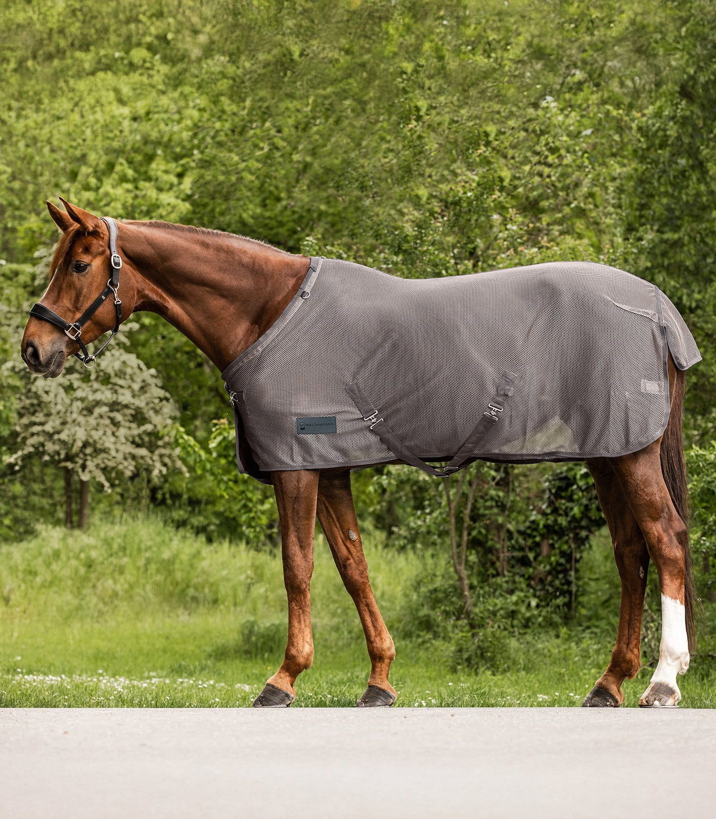 Zagotovite svojemu konju sproščujoče preživljanje časa na pašniku brez nenehnega nadlegovanja žuželk. Pregrinjalo proti insektom Comfort s križnimi trakovi navdušuje z izjemno lahkim in fino mrežastim materialom, ki predstavlja zanesljivo oviro pred muhami in obadi. Zaradi visoke zračne prepustnosti je kroženje zraka ves čas zagotovljeno, tako da se konj pod pregrinjalom ne znoji niti pri višjih temperaturah.