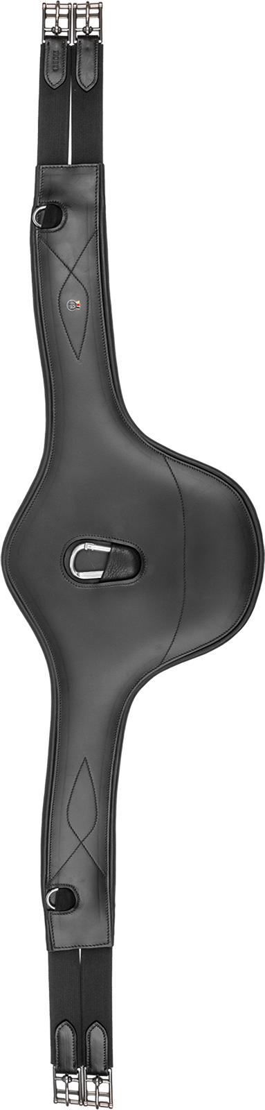 Za visoko udobje pri zategovanju je pas na obeh koncih opremljen z elastičnimi trakovi. Robustne valjčne zaponke iz nerjavečega jekla omogočajo preprosto in materialu prijazno zapenjanje. Za pritrditev pomožnih vajeti ali prsnih jermenov ima podsedelni pas visokokakovosten, na sredini nameščen karabin ter dodatne, ob straneh vgrajene D-obročke.