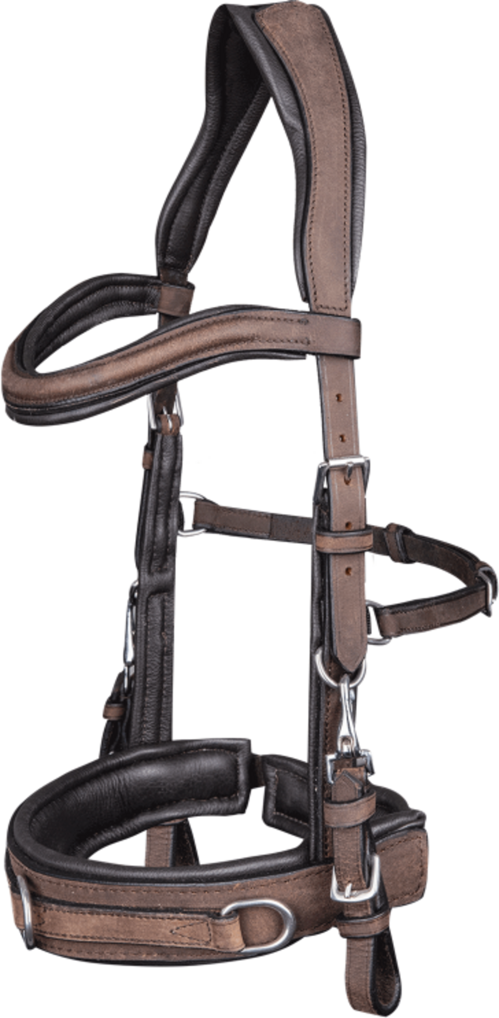 Opremljena z robustnimi kovinskimi elementi iz nerjavečega jekla, ta cavesson uzda ne prepriča le s svojo vzdržljivostjo, temveč tudi z vsestranskostjo, saj omogoča uporabo z brzdo ali brez nje. Tako je idealna za fino komunikacijo in gimnasticiranje konja, ne da bi pri tem omejevala naravno svobodo žvečenja ali vidno polje.