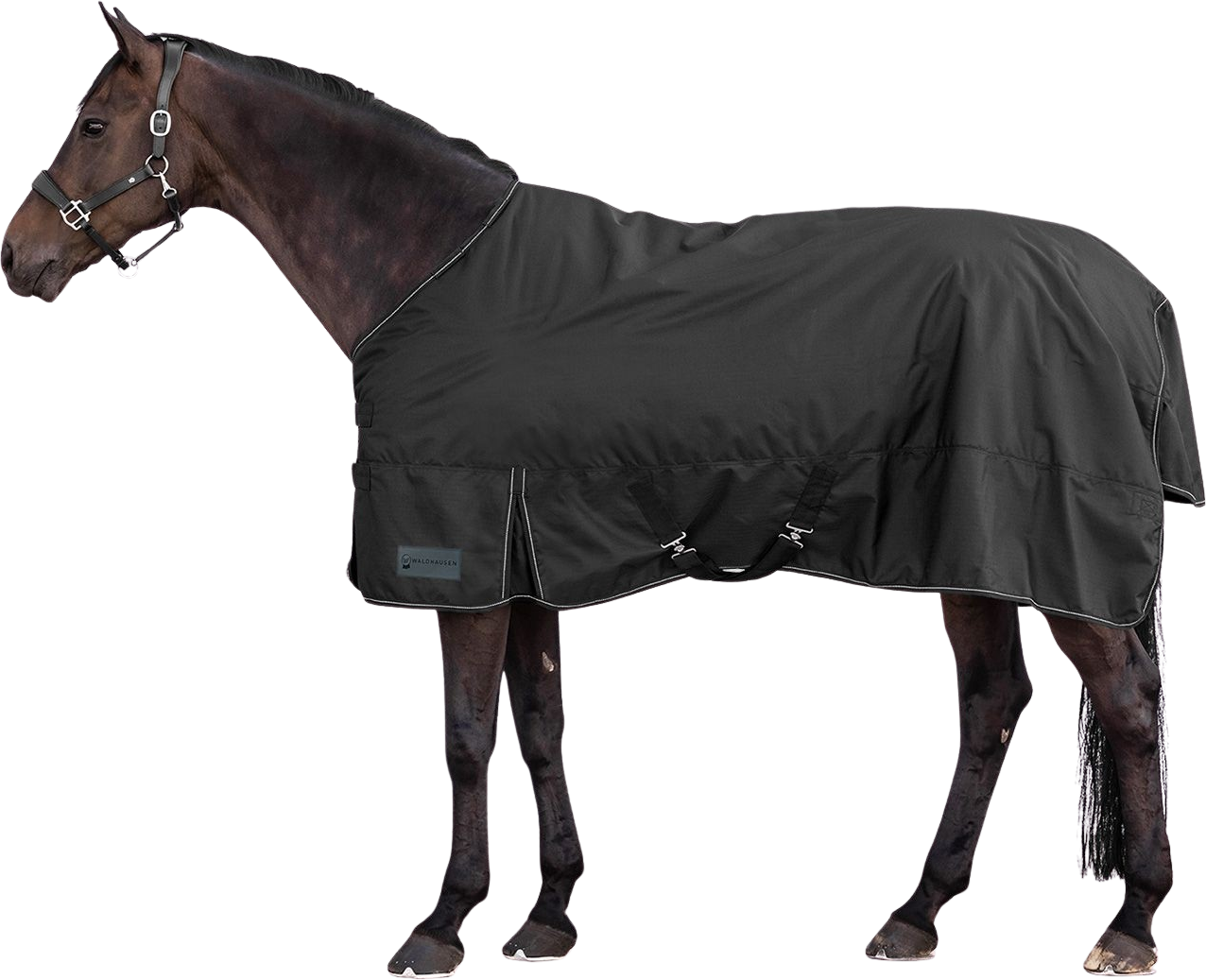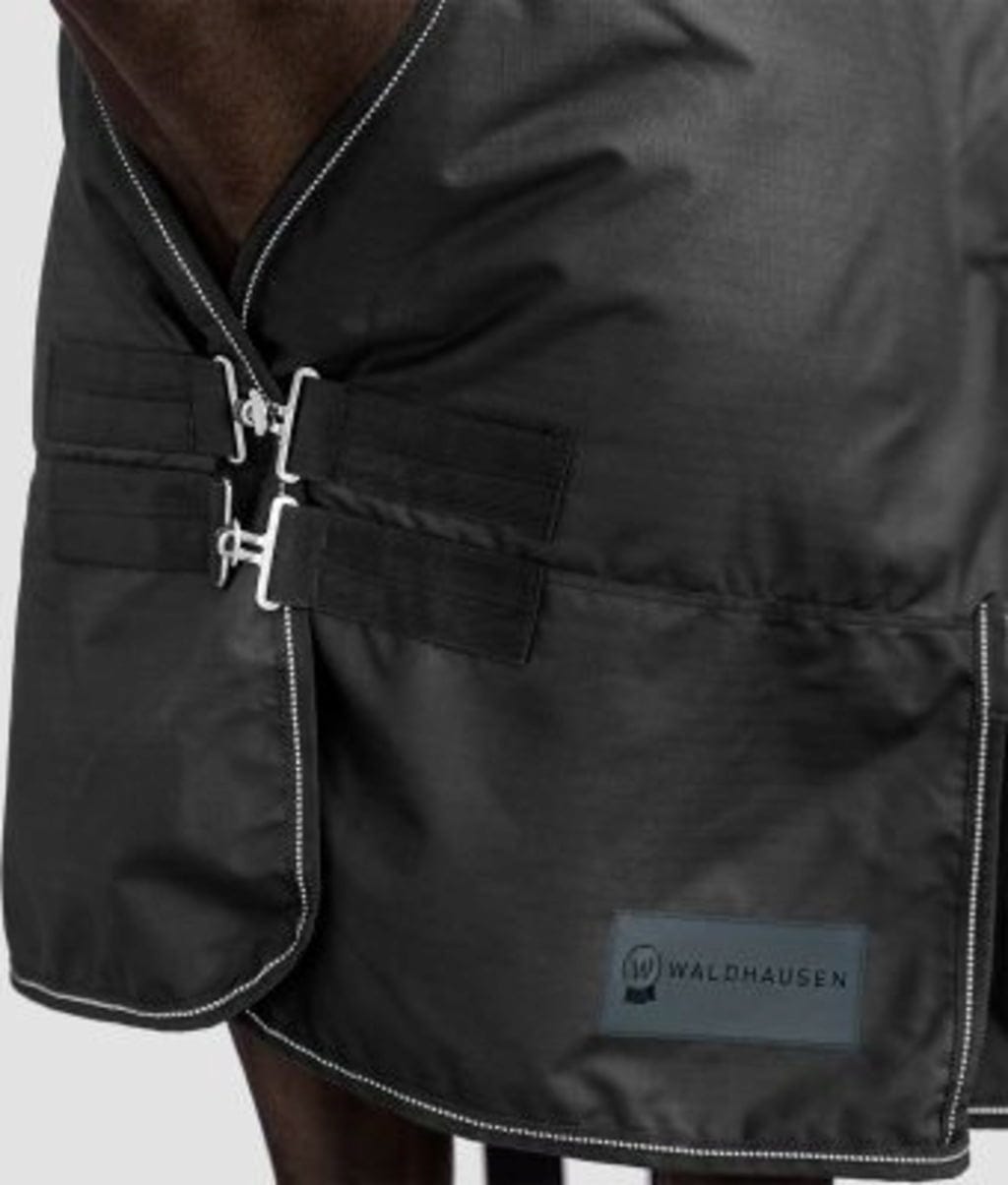 Pregrinjalo Nordic s 50 g polnila je odlična izbira za prehodne letne čase ali hladne, deževne poletne dni. Zahvaljujoč trpežnemu zunanjemu materialu s 3000 mm vodnega stolpca ohranja vašega konja zanesljivo suhega tudi v nalivu. Hkrati pa visoka zračnost preprečuje neprijetno kopičenje vlage pod pregrinjalom - kar je ključnega pomena za udobje vašega konja.