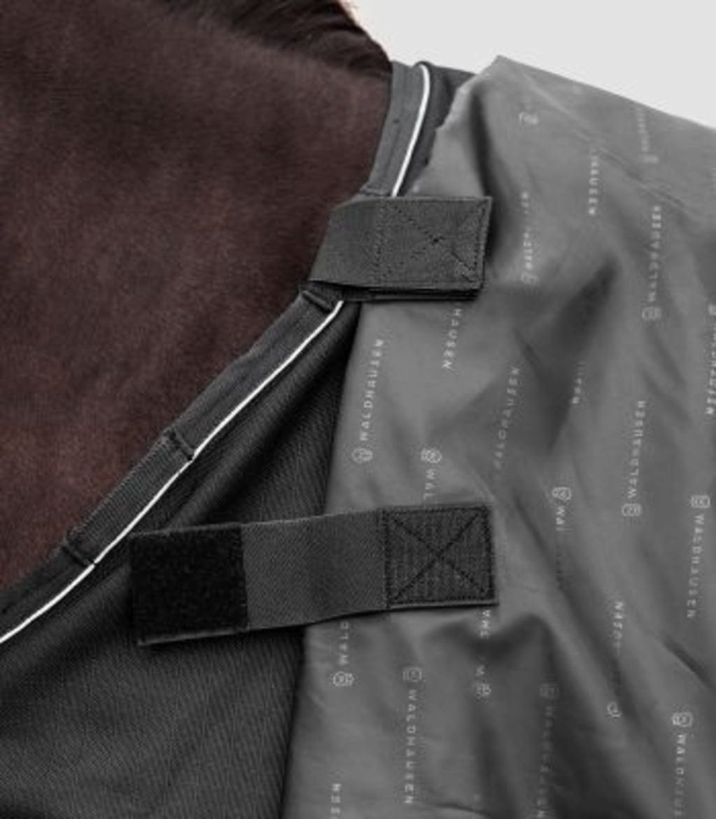 To pregrinjalo, izdelano iz robustne zunanje tkanine ripstop z gostoto 1200 denier, nudi odlično zaščito: je zanesljivo vodoodporno in zelo zračno, da preprečuje pregrevanje. Antibakterijska podloga zagotavlja higieno in je nežna do občutljive konjske kože. Penasti vložki na vihru zagotavljajo maksimalno udobje, saj nežno preprečujejo nastanek pritiskov, medtem ko velik všitek omogoča neomejeno gibanje.