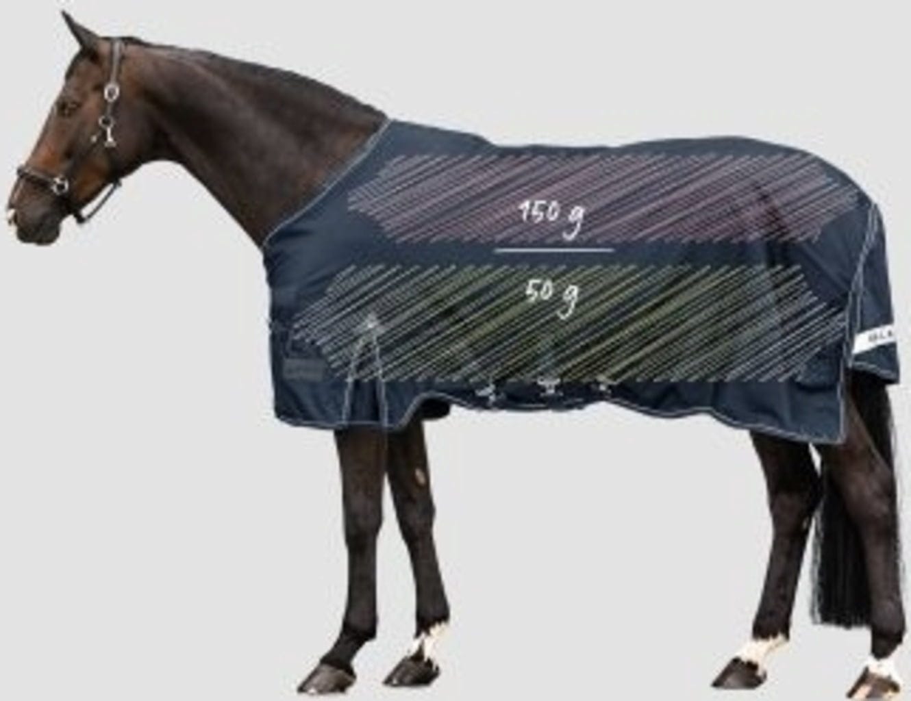 Edinstvena lastnost tega pregrinjala je v njenem dovršenem upravljanju toplote: na občutljivem predelu hrbta, kjer toplota najhitreje uhaja, 150-gramsko polnilo zagotavlja ciljno izolacijo. Na straneh je uporabljeno lažje 50-gramsko polnilo, ki zmanjša skupno težo in optimizira prileganje. Rezultat: vaš konj je optimalno ogrevan na idealni temperaturi brez pregrevanja.